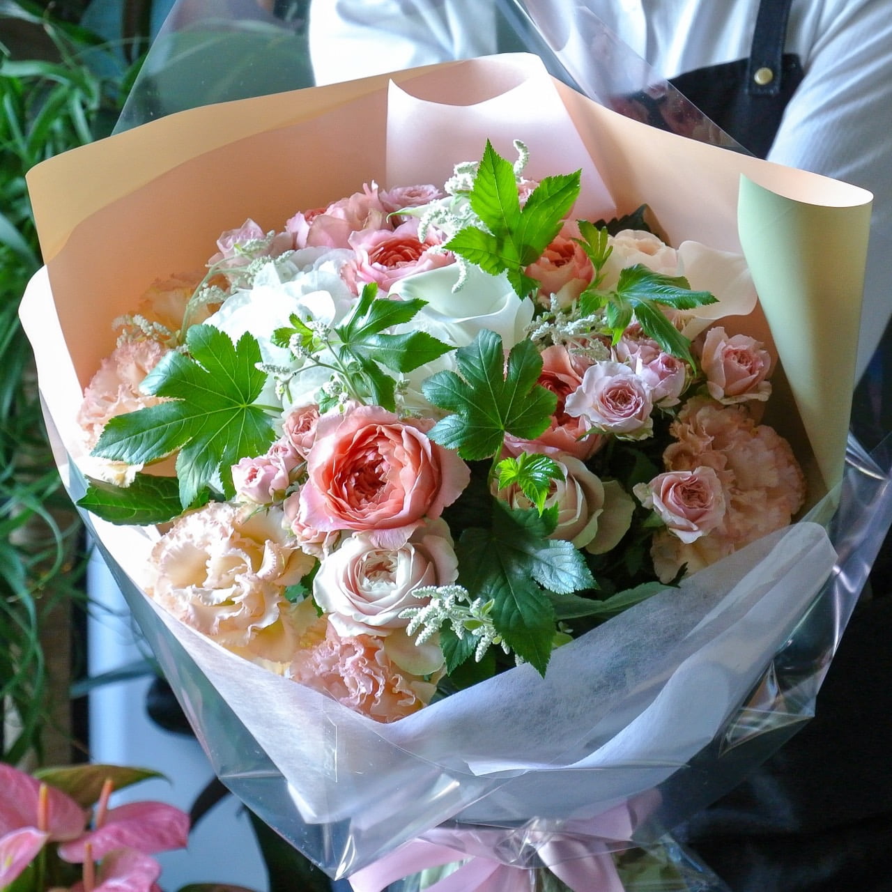 お祝いの花束やお礼の花束など、様々なシーンで大切な方へ贈る花束をご提供しています。普段、花屋へ訪れることが少ない、花束のイメージや組み合わせ方が分からないという場合もご安心ください。当店スタッフがお客様の想いやご要望を汲み取り、一つひとつ心を込めてお作りいたします。お花1本からご注文いただけますので、花束の制作ならお気軽にご相談ください。