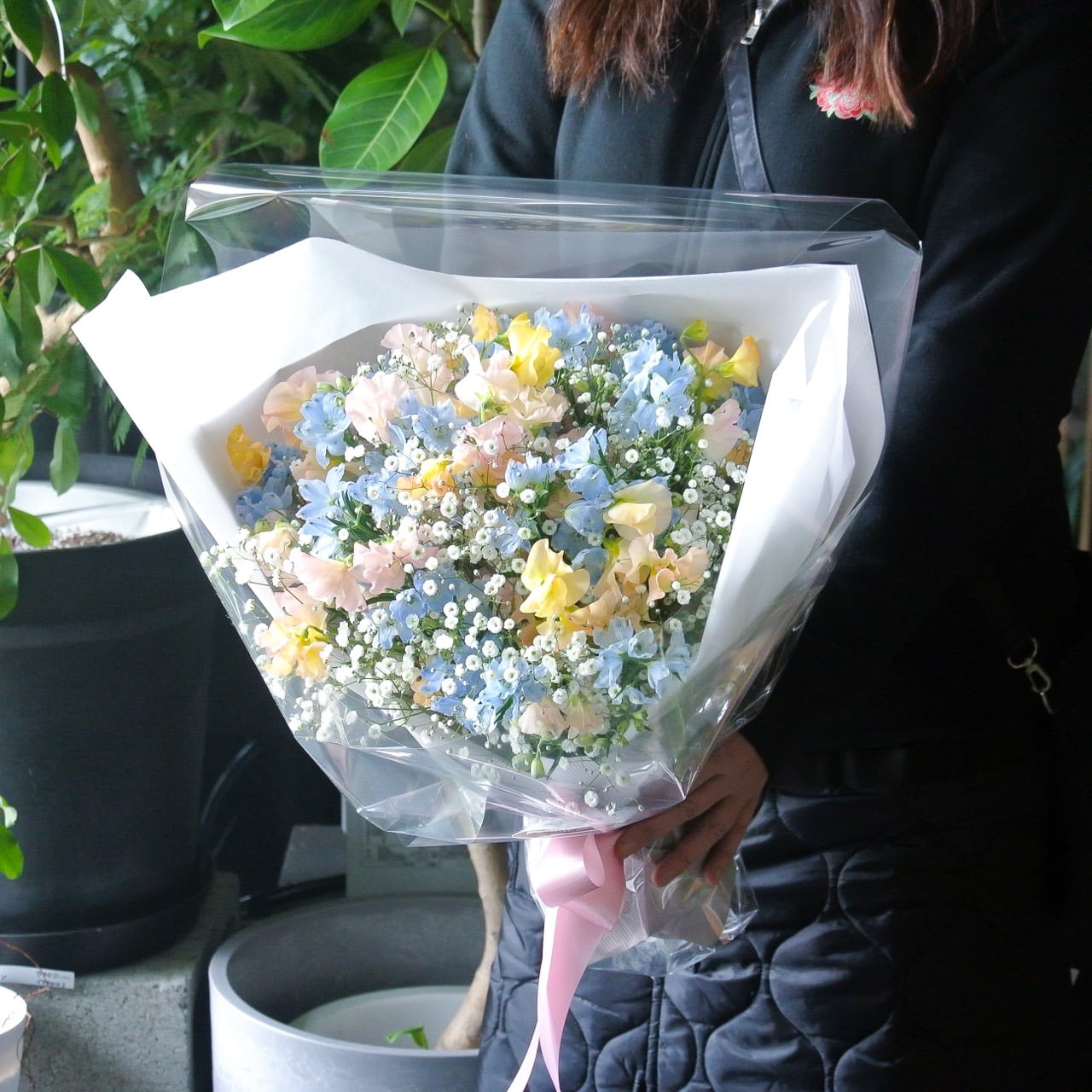 お祝いの花束やお礼の花束など、様々なシーンで大切な方へ贈る花束をご提供しています。普段、花屋へ訪れることが少ない、花束のイメージや組み合わせ方が分からないという場合もご安心ください。当店スタッフがお客様の想いやご要望を汲み取り、一つひとつ心を込めてお作りいたします。お花1本からご注文いただけますので、花束の制作ならお気軽にご相談ください。